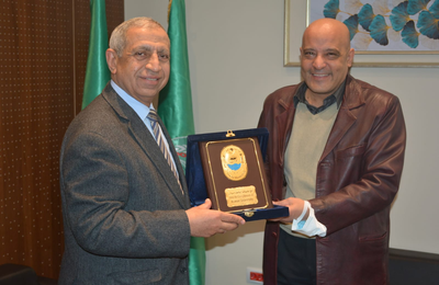 تكريم الأستاذ الدكتور/ أيمن عثمان رئيس جامعة أسوان من رئيس الأكاديمية العربية للعلوم والتكنولوجيا والنقل البحرى