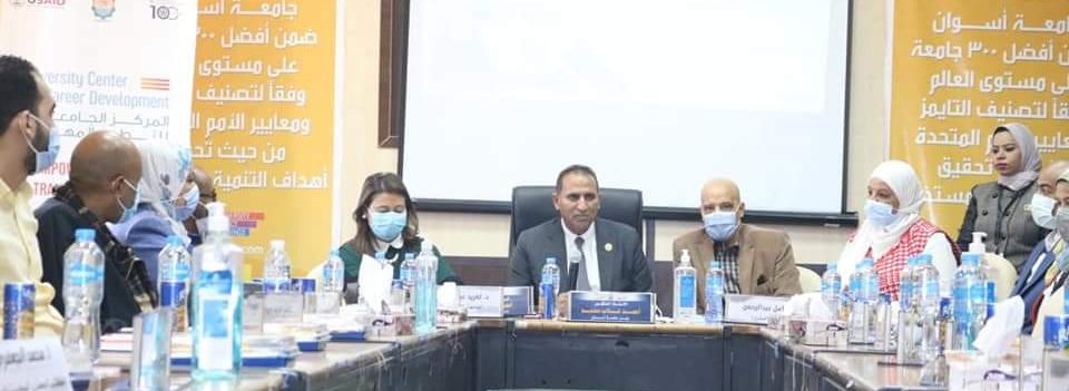 Which is organized by the University Center for Professional Development UCCD at Aswan University under the title “A round table with business owners in the governorate to discuss the impact of the global Corona pandemic on the labor market and the changes that have occurred in the field of employment for university graduates.”