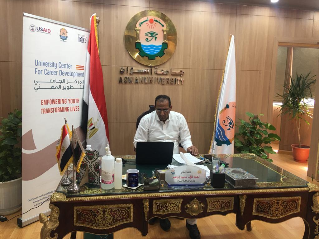 Dr. Ahmed Ghallab confirmed that the total number of beneficiaries of the University Center for Career Development services since the center’s inauguration on January 16, 2020, has reached about 16,331 students and graduates, with the participation of 6 local companies from Aswan Governorate and 58 companies at the level of the Republic.