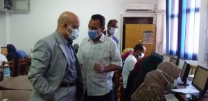 In light of the University’s advanced global rankings, Aswan University acting president Prof. Ayman Othman has formed a committee of examiners to examine the University’s irregular employment in order to restructuring and enhance their capacities. The committee consists of a chairman; Prof. Ashraf Imam, chairman and professor of geology department – faculty of science and the manager of Aswan training center as well as 2 members Dr. Mohammed Eid, university information center’s CIO, and Dr. Naser Mohammed, manager of e-learning unit, human resources administration, financial guidance administration and general manager of administrative affairs administration. Today Prof. Ayman Othman accompanied by the committee inspected the examination process. He stressed on the significance of training and promoting the capacities of university employees.