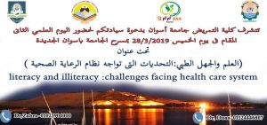 نظمت كلية التمريض جامعة أسوان يوم الخميس الموافق 28/3/2019 (اليوم العلمى الثانى) وذلك بمسرح الجامعة بأسوان الجديدة تحت عنوان: