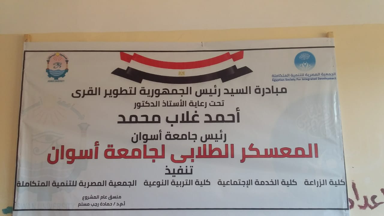 وصرح الدكتور أحمد غلاب رئيس جامعة أسوان أن المعسكر يضم حوالي 100 طالب من مختلف كليات الجامعة ويتضمن تشجير 350 شجرة وتركيب وصلات مياه الشرب لعدد من المنازل وإجراء صيانة المرافق ببعض المباني الحكومية بالقرية مثل أعمال السباكة والكهرباء والنجارة .