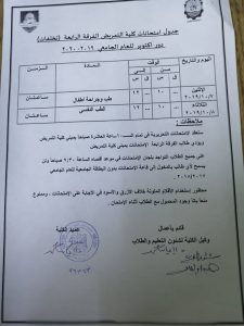 جدول امتحانات الفرقة الرابعة تخلفات دور اكتوبر للعام الجامعي 2019-2020