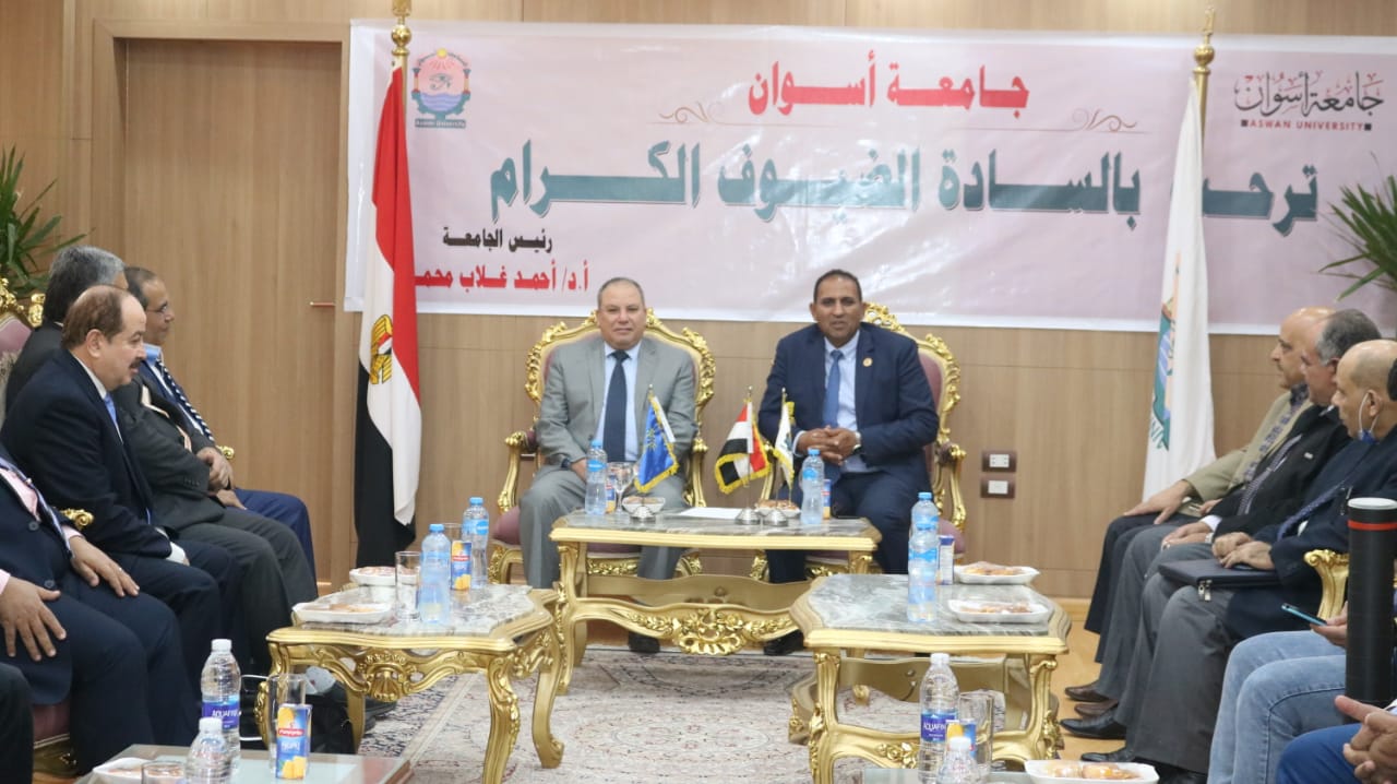 وحيث أن جامعتي أسـوان ,وأسيوط من الجامعات التي يتوافر لديها كافة المقومات الفنية والكوادر العلمية التي تقوم على خدمة ,وتنمية المجتمع، ولما كان للجامعتين دوراً هاماً وخبرات في العديد من المجالات من بينها حصر وتصنيف الأراضي وتحديد التراكيب المحصولية المناسبة لها ، لذا فقد اتفقت الأطراف على إبرام هذا البروتوكول بين وزارة الزراعة واستصلاح الأراضي ويمثلها في هذا الاتفاق مركز بحوث الصحراء ،وبين الجامعات المصرية ويمثلها في هذا الاتفاق جامعة أسوان وجامعة أسيوط ،وذلك بحضور الدكتـور/ أيمـن عثمان -نائب رئيس الجامعة للدراسات العليا والبحوث ،والدكتـور/ ياسـر عبدالحميد -عميد كلية الزراعة والموارد الطبيعية جامعة أسوان ،وأعضاء وفد وزارة الزراعة وجامعة أسيوط ،وفي نهاية اللقاء تبادل الطرفان الدروع التذكارية.