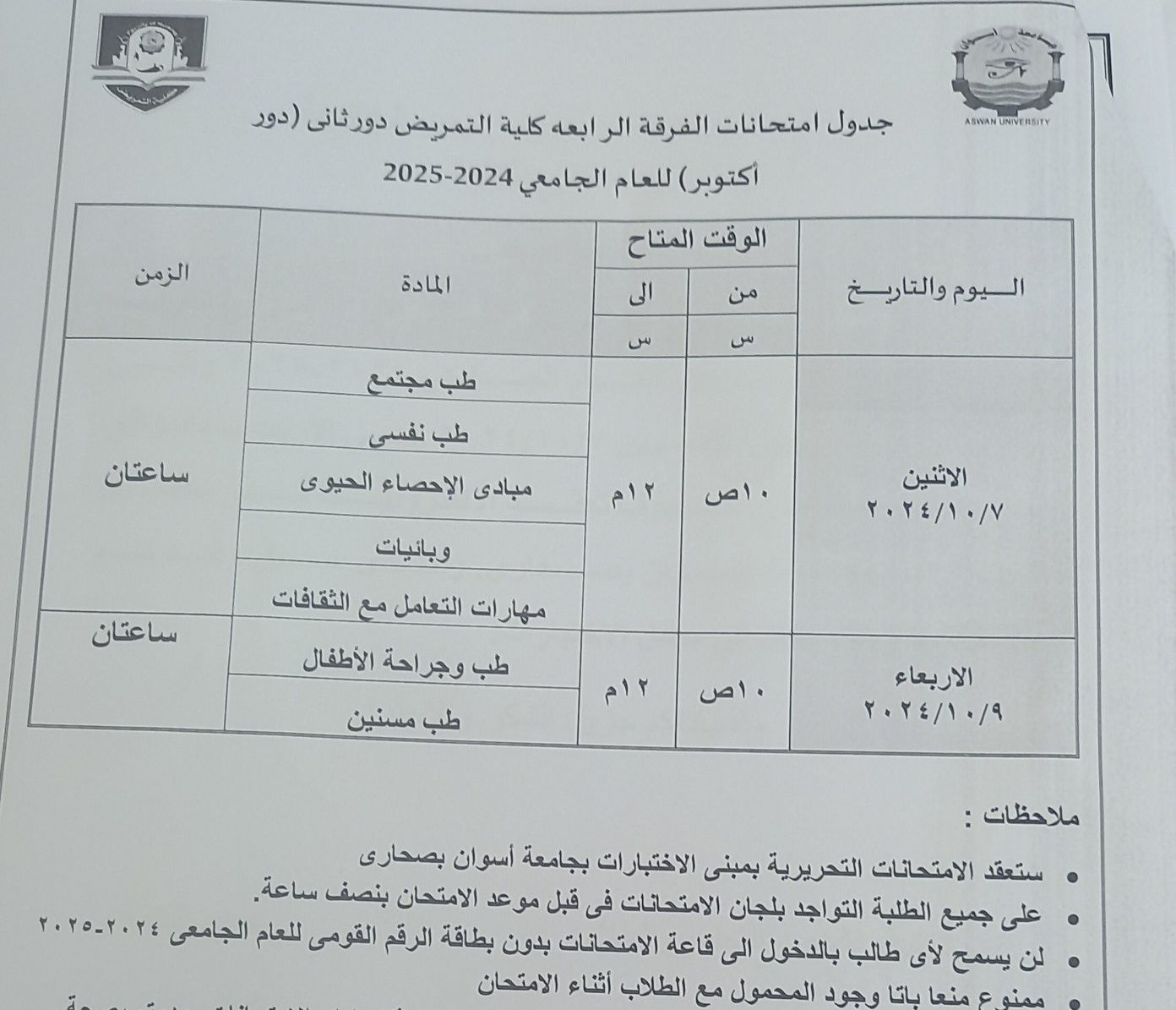 جدول امـــتحانات دور أكتوبر للعام الجامعي 2024/2025