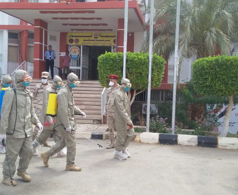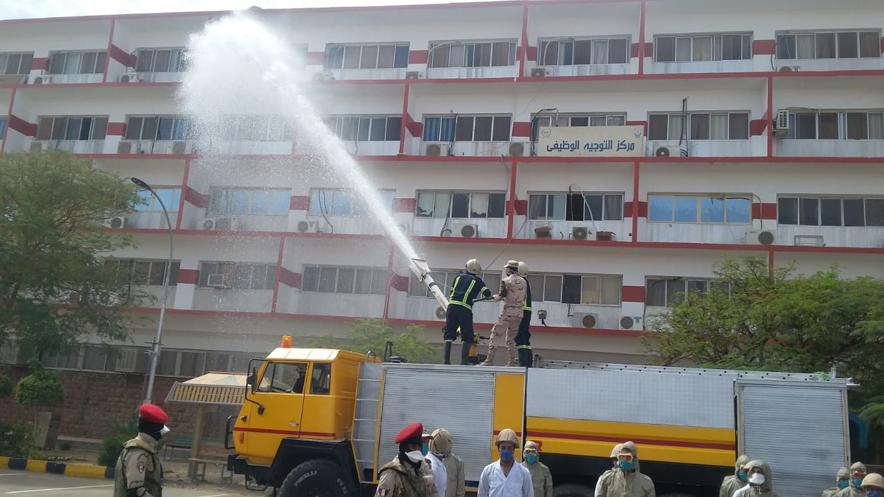 القوات المسلحة تقوم بأعمال الرش والتعقيم بجامعة أسوان
